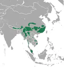 | نقشه گستره پراکندگی پلنگ ابری (سبز) | |