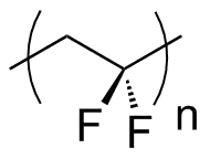 پلیمرهای فروالکتریک گروهی از پلیمرهای قطبی کریستالی هستند که همچنین فروالکتریک هستند، به این معنی که آنها یک قطبش الکتریکی دائمی را حفظ میکنند که میتواند در یک میدان الکتریکی خارجی معکوس یا عوض شود.[10][11] پلیمرهای فروالکتریک، مانند پلیوینیلیدین فلورید (PVDF) (شکل ۱) به دلیل پاسخ ذاتی پیزوالکتریک و همچنین به عنوان سنسورهای گرما به دلیل پاسخ ذاتی پیروالکتریک در مبدلهای صوتی و محرکهای الکترومکانیکی مورد استفاده قرار میگیرند.[12]
