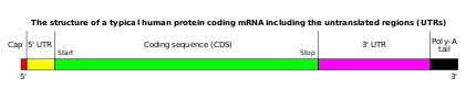 برای اطلاعات بیشتر آرانای و آرانای پیامرسان را ببینید. آرانایها نوعی از مولکولهای زیستی بزرگی هستند که از بلوکهای منحصربهفردی به نام نوکلئوتید (ادنین، سیتوزین، گوانین و یوراسیل) ساخته شدهاند. آرانای از روی الگوی دیانای ساخته میشود. طبق قرارداد دنبالهٔ آرانای از انتهای 5'به سمت انتهای 3' نوشته میشود. بنابراین، انتهای 5' زودتر از انتهای 3' رونویسی میشود. همچنین، انتهای 3' محلی است که دنبالهٔ آدنین برای چند آدنینه شدن قرار میگیرد.[8]