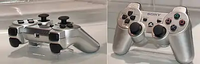 دستههای کنسول پلیاستیشن ۳ نسبت به نسخههای قبل خود از نظر ظاهری تغییر چندانی نکردهاست و فقط دکمه آنالوگ جای خود را به نماد پلیاستیشن دادهاند و دکمههای R۲ و L۲ کمی رو به بالا متمایل شدهاند، نام دستهها از «دوال شوک» به «سیکس اکسیس» تغییر یافتهاست.