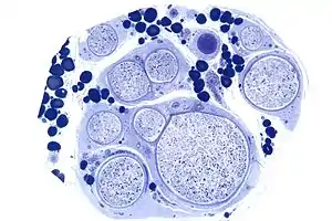 | Micrograph showing peripheral neuropathy (vasculitis).Polyneuropathy is peripheral neuropathy occurring in the same area on both sides of the body. | |
