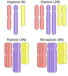 اغلب یوکاریوتها دیپلوئید هستند یعنی دو دسته کروموزوم مشابه دارند ولی برخی جانداران به ویژه گیاهان پلی پلوئید (دارای سه یا بیشتر دسته کروموزوم مشابه) هستند.