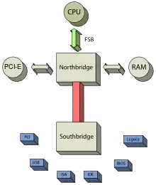 به دلیل آنکه پل جنوبی در فاصله زیادی از پردازنده مرکزی قرار دارد، مسئولیتهای کمتری به آن واگذار میشود. بهطور سنتی رابطه بین پل شمالی و پل جنوبی بوسیله یک گذرگاه (Bus) انجام میشود، ولی چون گذرگاه سرعت کمی دارد، بیشتر تراشههای امروزی از یک رابط دیگر با یک کارائی بالا استفاده میکنند.