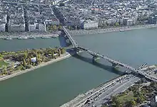 پل مارگیت که در بین سالهای ۱۸۷۲–۱۸۷۶ ساخته شده، در میان به جزیره مارگیت مماس میشود. زاویه بین دو بخش پل در نقطه تماس با جزیره ۱۶۵ درجه است. دلیل اصلی برای این شکل هندسی نامعمول، اضافه کردن شتابزده بخش متصل کنندهٔ پل به جزیره، در طراحی است. طول پل ۶۳۷٫۵ متر و عرض آن ۲۵ متر است.