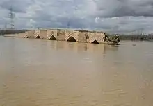 پل تاریخی میرزا رسول در جریان طغیان سیمینه رود در فروردین ۱۳۹۵