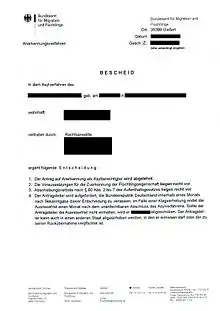 - "Widerrufsverfahren". Bundesamt für Migration und Flüchtlinge. Archived from the original on 2011-08-07. Retrieved 2014-04-27.