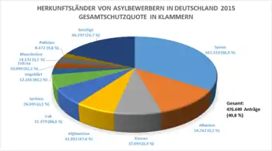 |نشانی=را بررسی کنید (کمک) در ۲۲ فوریه ۲۰۱۸. دریافتشده در ۵ ژوئیه ۲۰۱۷. - "476.649 Asylanträge im Jahr 2015". BAMF. 6 January 2016.
