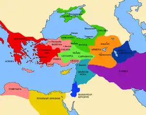 از دیر باز خاندان شاهی ایرانینژاد بر آنجا حکومت میکردند و در معابد بزرگی که بردگان مقدس زن و مرد بیشماری وقف آنها بود، مغان نفوذ دینی داشتند. این سرزمین از زمانهای کهن تحت نفوذ فرهنگ ایرانی قرار گرفته و بسیاری از باورهای دینی و رسم و آیینهای ایرانی را پذیرفته بود. بنا بر قول استرابو در همهٔ شهرهای پونتوس آتشکدهها وجود داشت و مغان در همه جا فراوان بودند. اسکندر مقدونی در تازش به هخامنشیان بر این بخش هم دستیافت. با مرگ او و آشفتگیای که در پیاش آمد پادشاهی پونتوس در آن سوی رود هالیس در ۳۰۲ (پیش از میلاد) بنیاد نهاده شد. پایهریز این پادشاهی مهرداد یکم کتیستس پسر مهرداد دوم کیوسی بود. این مهرداد دوم یک ایرانی بود که در خدمت آنتیگونوس یکم مونوفتالموس یکی از جانشینان اسکندر بود. این پادشاهی تا ۶۴ (پیش از میلاد) به دست فرزندان مهرداد پایدار ماند. در زمان مهرداد بزرگ این پادشاهی از مرزهای پنتوس بسیار فراتر رفت. در ۶۴ پیش از میلاد پومپی سردار رومی بر این سرزمین دستیافت. پومپی سردار رومی که آسیای صغیر و پونتوس و کاپادوسیه را فتح کرده بود، آریوبرزن دست نشاندهٔ خود را در این نواحی به امیری گذاشت و در همان زمان بود که پس از چندین قرن به جای گاهشماری کاپادوسی-ایرانی تقویم رومی در این کشورها رایج شد.[4]