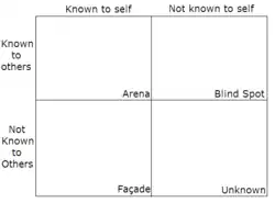 - منطقهٔ کور که نشاندهندهٔ جنبههایی از شخصیت فرد است که برای دیگران شناخته شده است ولی برای خود فرد ناشناخته است.