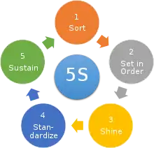 این پنج سین مشخصکنندهٔ روشی برای ساماندهی محیط کار برای بهبود کیفیت و افزایش بهرهوری و کاهش اتلاف منابع هستند.[1] این سامانه پس از جنگ جهانی دوم در ژاپن مطرح گردید.[2][3]