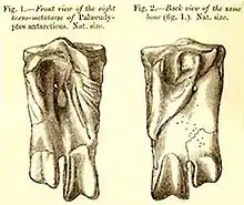 | تصویر اصلی کشیده شده توسط هاکسلی از سنگواره استخوان قوزک پای این پنگوئن | |