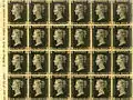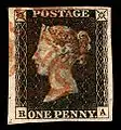 ![]() نمونهای از تمبر پنی سیاه که به عنوان اولین تمبر پستی دنیا شناخته میشود | |