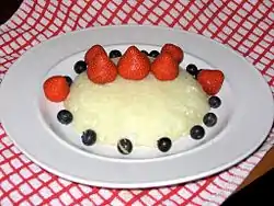 ![]() پودینگ پنیر تزیین شده با توت فرنگی و بلوبری | |