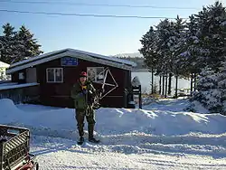 ![]() A radio scientist from دانشگاه استنفورد at the Port Lions post office. | |