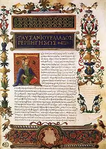 ![]() نسخه خطی (1485), Description of Greece by Pausanias at the کتابخانه لورنزی | |