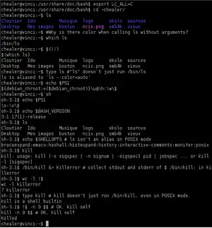 - Ctrl+z: ارسال یک سیگنال از نوع SIGTSTP به پروسهٔ فعلی، به باعث به تعلیق درآمدن آن میشود؛ که برای برگشت دادن آن میتوان از دستور