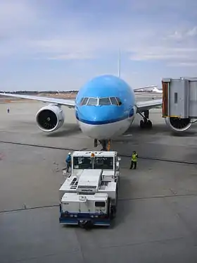 اگرچه بسیاری از هواپیماها قادرند با نیروی معکوس خود (Trust reverse) روی زمین به سمت عقب حرکت کنند اما گل و لای حاصل از نیروی موتور ممکن است باعث خرابی ساختمان ترمینالها یا تجهیزات درون موتور شود. موتورهای نزدیک به زمین با وزیدن باد ماسه وشن را به داخل موتور خود میکشند که باعث خراب شدن موتور میشود. بنابراین روشی که برای حرکت هواپیما و دور شدن از گیت فرودگاه ترجیح داده میشود استفاده از پوش بک تراکتور میباشد.