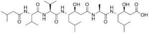 پپستاتین (به انگلیسی: Pepstatin) با فرمول شیمیایی C۳۴H۶۳N۵O۹ یک ترکیب شیمیایی با شناسه پابکم ۵۴۷۸۸۸۳ است. که جرم مولی آن ۶۸۵٫۸۹۲ g/mol میباشد.