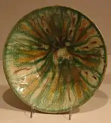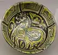 سفال تزئئین شده. سده 10 یا 11 میلادی. کشف شده در تپه مدرسه، نیشابور.موزه متروپولیتن نیویورک.