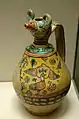 ابریق. منقش به خطوط کوفی و نسخ. سده یازدهم. کشف شده در تپه مدرسه، نیشابور.موزه متروپولیتن نیویورک.