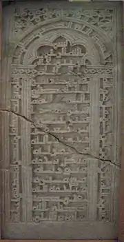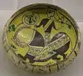 ظرف منقش به خط کوفی. سده 10 یا 11 میلادی. کشف شده در تپه مدرسه، نیشابور.موزه متروپولیتن نیویورک.