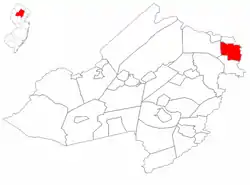 ![]() Pequannock Township highlighted in Morris County. Inset map: Morris County highlighted in the State of New Jersey. | |