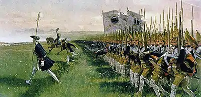 نقاشی ناپلئون بناپارت به همراه نیروهای پیاده نظام ارتش فرانسه