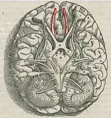 پیاز و مجراهای بویایی در مغز (به رنگ قرمز).