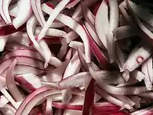 پیاز قرمز که گاهی اوقات پیاز ارغوانی هم خوانده میشود . یک رقم از پیاز با پوست قرمز ارغوانی و گوشت آن به رنگ سفید با رنگ جزیی قرمز است.