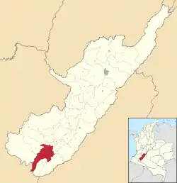 ![]() Location of the municipality and town of Pitalito in the Huila Department of Colombia. | |