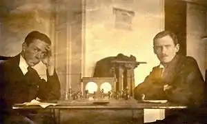رومانوفسکی (سمت چپ) و الکساندر آلخین، ۱۹۲۰ میلادی