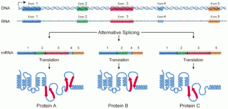پیرایش دگرسان یک پدیدهٔ طبیعی در یوکاریوتهاست و تأثیر فراوانی بر تنوع زیستی پروتئینهایی دارد که قابلیت کُدگذاری از ژنوم را دارند.[4] در انسان در حدود ۹۵٪ از ژنهای چند-اگزونی دچار پیرایش دگرسان میشوند.[5] روشهای گوناگونی برای پیرایش دگرسان وجود دارد که رایجترین آن پرش/دررفتگی اگزون است. در این حالت، یک بخش خاص از اگزون، تحت شرایط ویژه در ساختمان آرانای پیامرسان یک بافت خاص باقی مانده و از امآران پیامرسان بافتهای دیگر حذف میشود.[4]