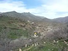 تصویری از آرامگاه پیریونس که آبادی انجیران هم در آن پیداست.
