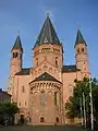 Eastern front of the Mainz Cathedral. The central tower dates back to Cuypers work in 1875.