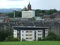 ![]() Paisley's skyline and backdrop from Saucel Hill, with the Thomas Coats Memorial Baptist Church in the centre | |