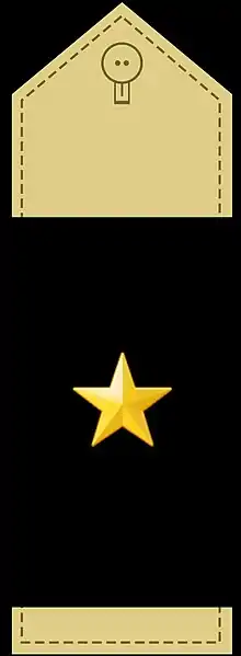 | ستوان دوم (جێدار) | ستوان یکم (جێداری یهکهم) | سروان (پێشهنگ) | سرگرد (پێشڕهو) | سرهنگ دوم (پێشکار) |