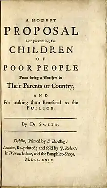 «پیشنهادی مؤدبانه برای ممانعت از اینکه فرزندان افراد فقیر ایرلند سربار والدین یا کشورشان باشند، و بدان منظور که برای عموم مفید واقع شوند»، تحت عنوان پیشنهاد مؤدبانه نام رسالهای طنز جوونال از جاناتان سویفت است که در سال ۱۷۲۹ بهصورت گمنام به چاپ رسید.[1]