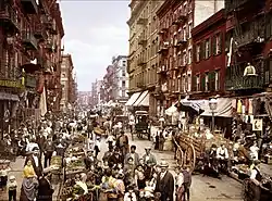 در طول قرن نوزدهم و در دورانی که شهر نیویورک در حال تغییر شکل یافتن توسط مهاجرین بود، یک پروژه رویایی و بزرگ با نام «طرح کامیشنر ۱۸۱۱ میلادی» به مرحلهٔ اجرا گذاشته شد که بر اساس آن، تمام خیابانهای محله منهتن عریض میشدند. همچنین افتتاح کانال ایری در سال ۱۸۱۹ میلادی که باعث تقویت و رونق شدید زراعت در منطقه شد.[8][9] در سال ۱۸۳۵ میلادی، شهر نیویورک با گذر از شهر فیلادلفیا به پرجمعیتترین شهر در ایالات متحدهٔ آمریکا تبدیل شد. مهاجرین ایرلندی که در آنزمان منسجمترین و پرتعدادترین گروه مهاجران نیویورکی بودند، با حمایت از ماشین سیاسی «تامانی هال» (Tammany Hall) در زیر یک پرچم، به قبضهٔ کامل قدرت در شهر نیویورک پرداختند.[10] در همین حال، اشرافیان مردُمگرای تاجرمنصب برای ساخت پارک مرکزی نیویورک در مرکز محله منهتن فشار میآوردند که فشار آنها منجر به ساخت اولین پارک مُدرن در تاریخ ایالات متحدهٔ آمریکا در سال ۱۸۵۷ میلادی شد.