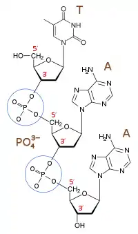زنجیرههای فسفودیاستر ارتباط زیادی با حیات دارند بطوریکه زیرساخت رشتههای DNA را تشکیل میدهند. در DNA و RNAرشتههای فسفودیستر ارتباط بین کربن ۳' مولکول قند یک نوکلئوتید و کربن ۵' قند نوکلئوتید بعدی را تشکیل میدهد. مولکولهای قندی در DNA دئوکسیریبوز و در RNA ریبوز میباشد.