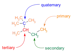 - پیوند سه تایی کربن (tertiary carbon atom) با سه اتم کربن در همسایگی.