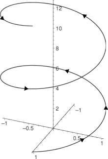 پیچهٔ راستگردِ (cos t, sin t, t) از t = 0 تا 4π. پیکانها جهت افزایش t را نمایش میدهند.