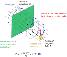 یک ذرهٔ باردار در میدان مغناطیسی در حال طیکردن یک مسیر پیچهوار