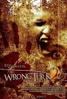 - مشارکتکنندگان ویکیپدیا. «Wrong Turn 2: Dead End». در دانشنامهٔ ویکیپدیای انگلیسی، بازبینیشده در ۱۳ سپتامبر ۲۰۱۷.