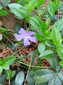 گیاهی پایا، علفی و خزنده که بومی اروپاست. گیاهی چندساله و همیشه سبزکه روی زمین گسترده میشود که ارتفاع آن تا ۶۰ سانتیمتر میرسد. برگهایش کامل و متقابل و بیضی کوچک دراز نوک تیز و کمی براق است. گلهایش چهارگلبرگی تا پنج برگی قیفی شکل غالباً آبی رنگ و گاهی آبی روشناست. گلها در اواسط زمستان تا اواسط بهار باز میشوند.