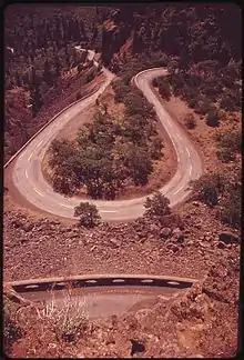 پیچهای گیرهٔ سر معمولاً هنگام بالا رفتن یا پایین آمدن جاده از یک شیب تند ساخته میشوند و عبور از مسیر پرشیب را با شیب مناسب امکانپذیر میکنند. این پیچهای معمولاً به صورت زیگزاگی طراحی میشوند. بزرگراههای دارای پیچهای متوالی گیرهٔ سر در مقایسه با مسیرهای مستقیم، امکان بالا رفتن و پایین آمدن ایمنتر و سادهتر در زمینهای کوهستانی را فراهم میکنند؛ ولی به ازای آن، مسیر طولانیتر و معمولاً با محدودیت سرعت پایینتر خواهد بود. چنین بزرگراههایی هزینهٔ کمتری نسبت به بزرگراههای دارای تونل تحمیل میکنند.