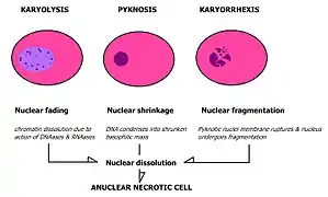 شاخصههای ظاهری پیکنوز و سایر انواغ تخریب هستهٔ سلول