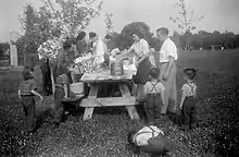 پیک نیک در یک منطقه پوشیده شده از درخت (هری واکر عکاس حدود ۱۹۰۰-۱۹۴۹)
