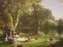 از دههٔ ۱۸۳۰ به بعد، نقاشیهای منظرهای نقاشان آمریکایی عمدتاً حاوی صحنهای از پیک نیک بود. اثر توماس کول با نام پیک نیک مربوط به سال ۱۸۴۶ در موزه بروکلین نگهداری میشود.