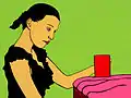 زن با کلاه سیاه و لیوان زرد