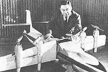 ![]() زیمرمن با یک مدل از تونل باد | |